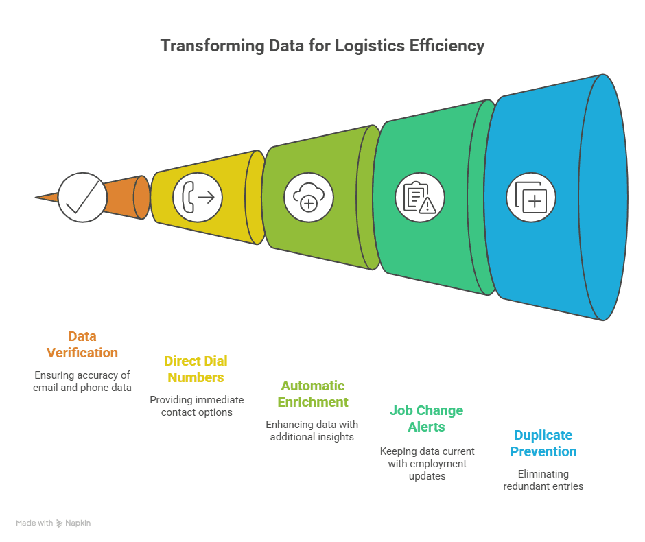 If your CRM data is incomplete or outdated (which happens in logistics all the time), enrich it so you have a clean foundation before you scale outreach.